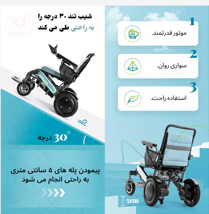 ویلچر برقی تاشو سبک پیشرفته با آلیاژ هوانوردی مدلD-EA8000-UP تایوانی دیاناوکس