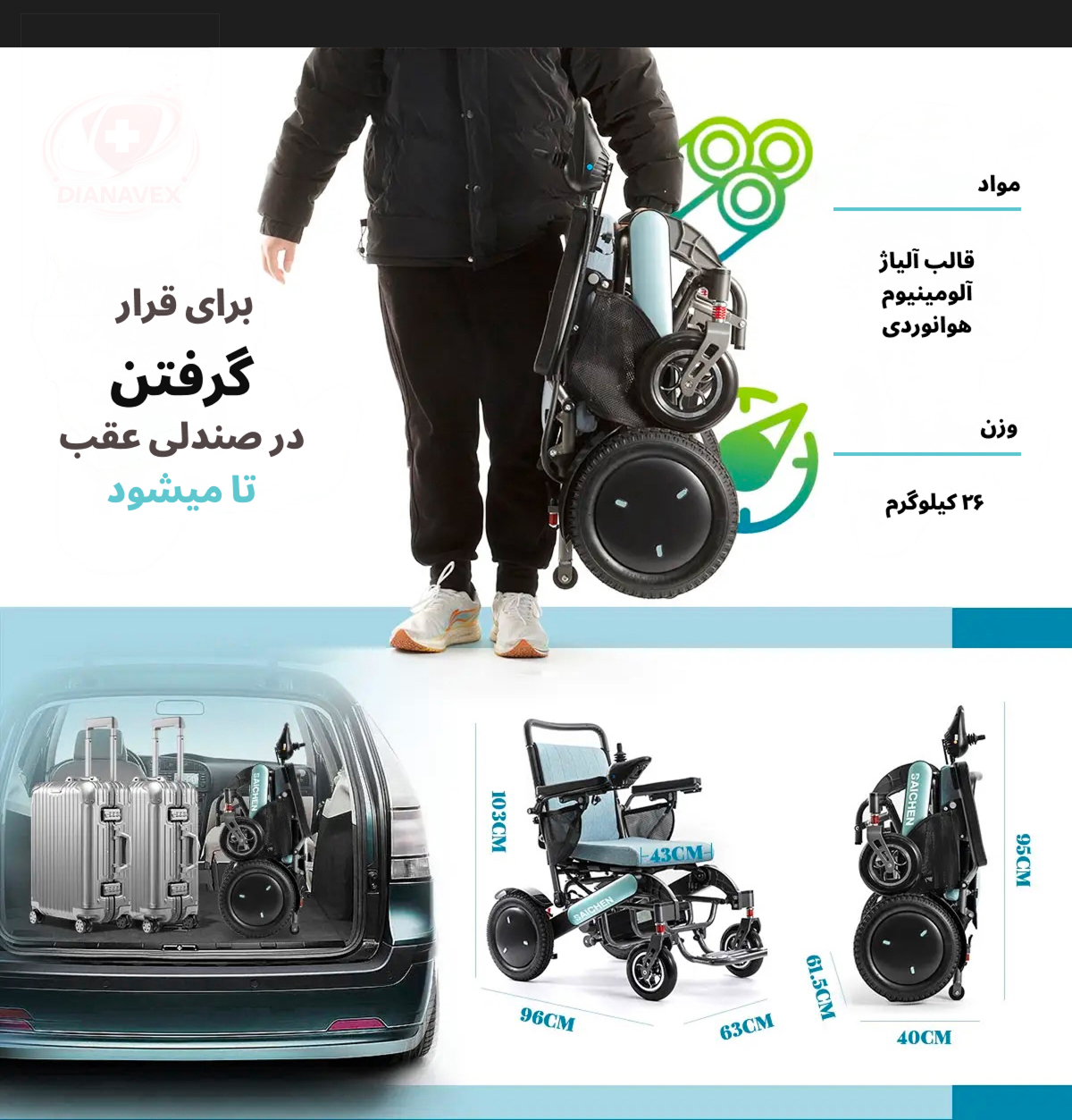 ویلچر برقی تاشو سبک پیشرفته با آلیاژ هوانوردی مدلD-EA8000-UP تایوانی دیاناوکس